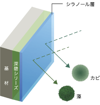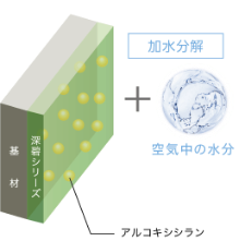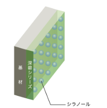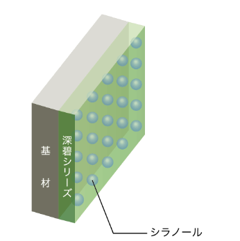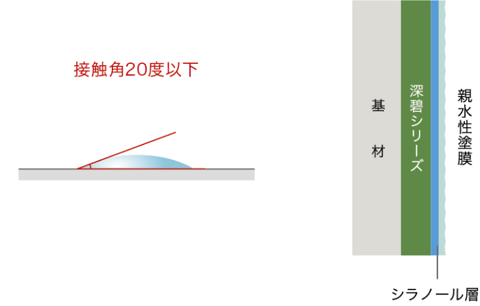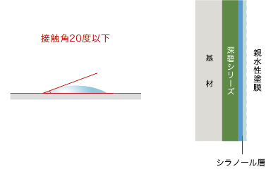 深碧は塗膜の表層にシラノール層を形成することで親水性塗膜となります。